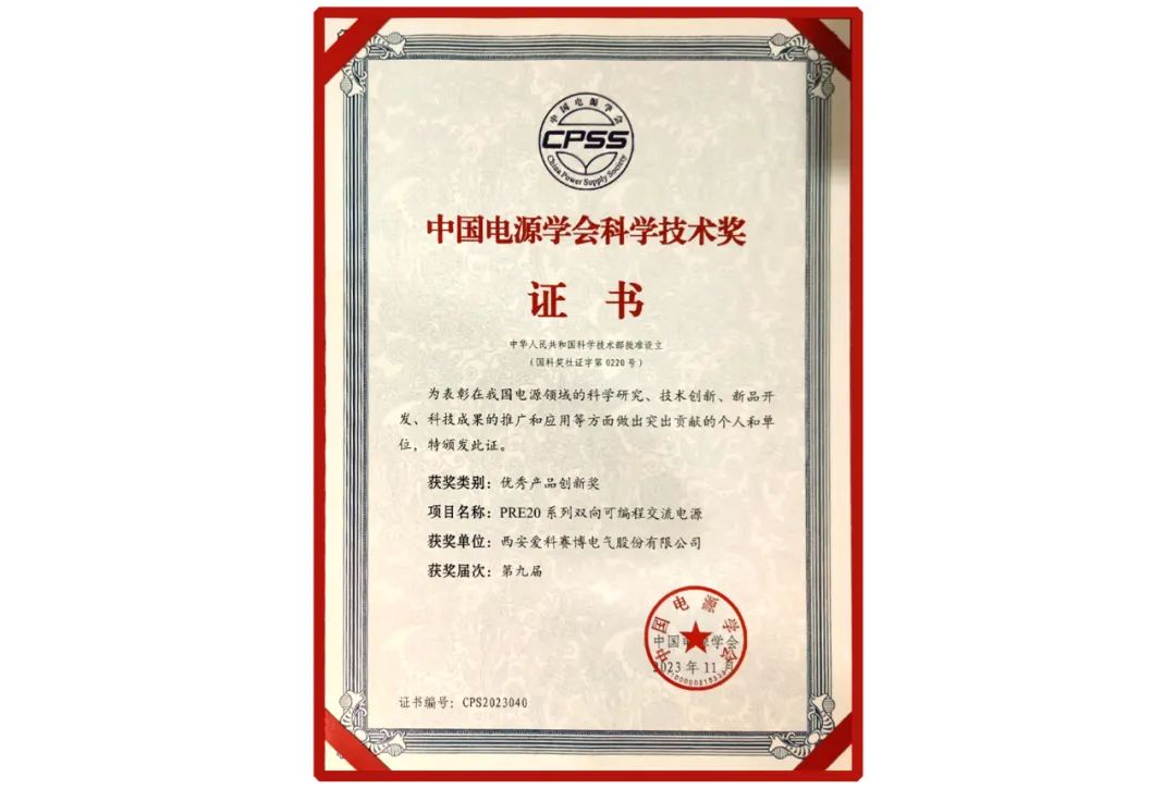愛科賽博持續專注電力電子功率變換和控制領域的研發創新27載,掌握自主知識產權核心技術,取得各類專利上百項。愛科PRE20系列雙向可編程交流電源,憑借其源載一體、高功率密度、雙向回饋、多場景模擬等特點,在眾多產品競爭中脫穎而出,獲得第九屆中國電源學會科學技術類優秀產品創新獎。