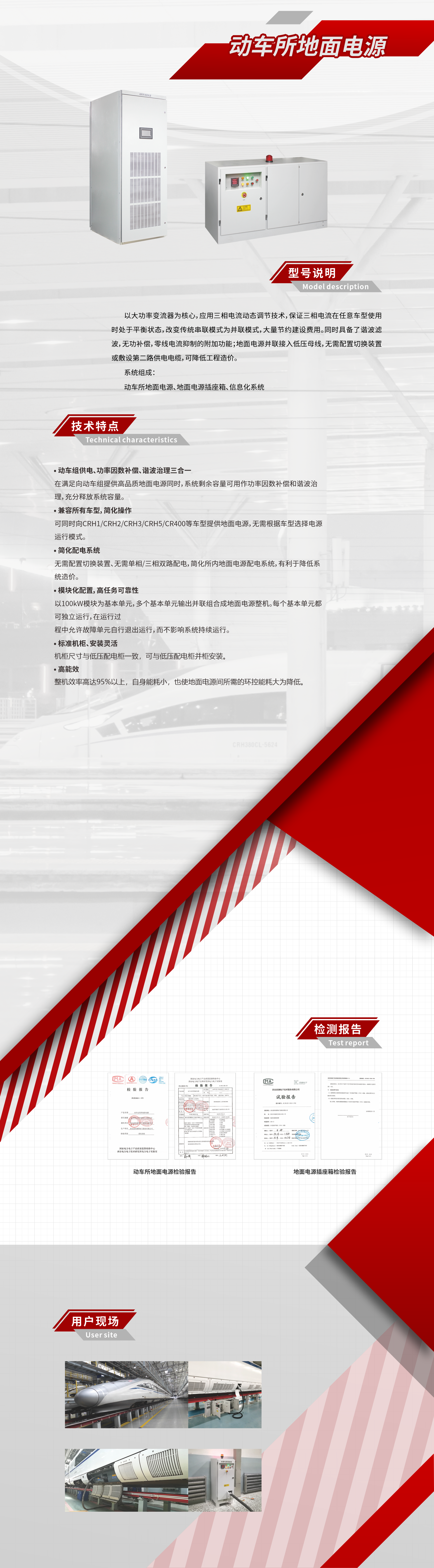 兼容所有車型,簡化操作: 可同時(shí)向CRH1/CRH2/CRH3/CRH5/CR400等車型提供地面電源,無需根據(jù)車型選擇電源運(yùn)行模式