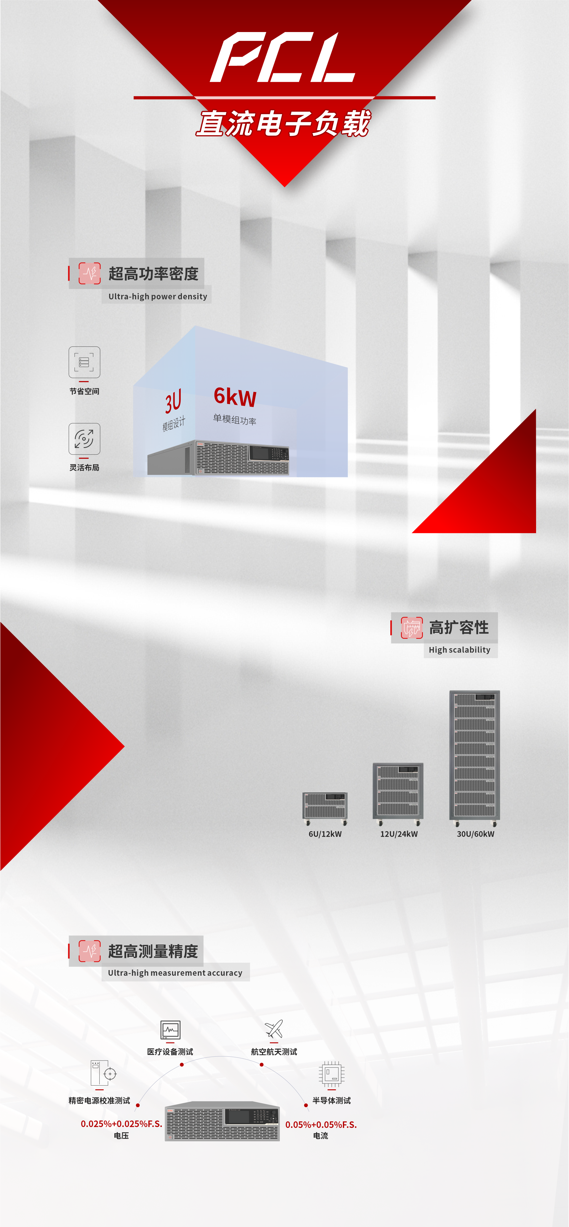 • 數字并聯系統PCL系列產品配備了高速數字并聯系統,能將多達100臺產品組合成一個完整的系統,形成高達600 kW的總功率。并聯之后的系統仍然能達到單機的性能標準。
