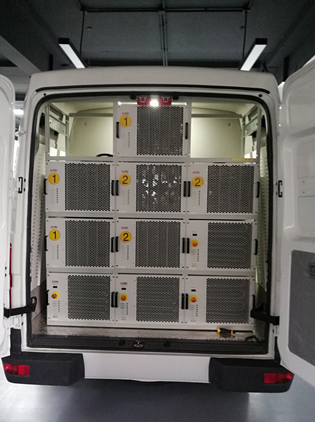 • 移動測試車內(nèi)設(shè)備放置區(qū)結(jié)合具體設(shè)備的效率及散熱方式進行必要的風(fēng)道設(shè)計,具備能夠自動開啟的散熱通風(fēng)裝置;