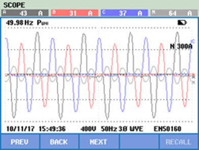 針對上述問題,我公司對該醫院配電系統進行了檢測分析,發現配電系統諧波較大,會影響高精密設備運行;末端配電箱中線電流大導致電纜發熱,長期會有火災隱患。最終方案采樣有源電力濾波器APF在變壓器低壓側對諧波進行集中治理,采樣中線安防控制器SNP在末端各配電箱進行中線電流治理,總體效果明細,確保醫院供電系統安全可靠。