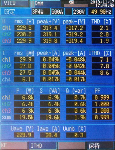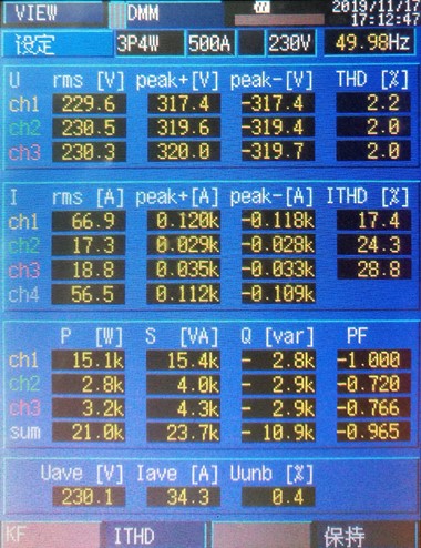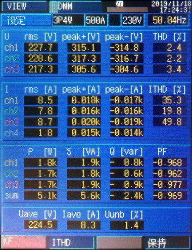 采用SinPOWER品牌ibook系列有源電能裝置后,該配電系統(tǒng)中的三相負(fù)荷不平衡、無功電流、諧波電流均得到了消除,電網(wǎng)側(cè)治理效果明顯。